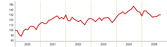Fund indexed performance (initial value =100%). Performance statistics are based on offer-bid prices of the fund with dividend reinvested, in fund class currency